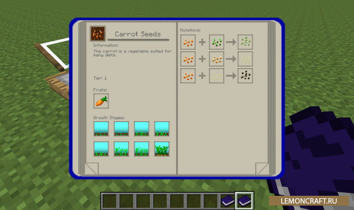 С модом AgriCraft вы сможете стать настоящим агрономом. Мод добавляет в игру различные инструменты для земледелия и растения для разведения. Теперь вы сможете заниматься селекцией и гибридизацией растительных культур. Кроме этого мод добавит новую систему хранения и удобную систему полива для ваших растений.