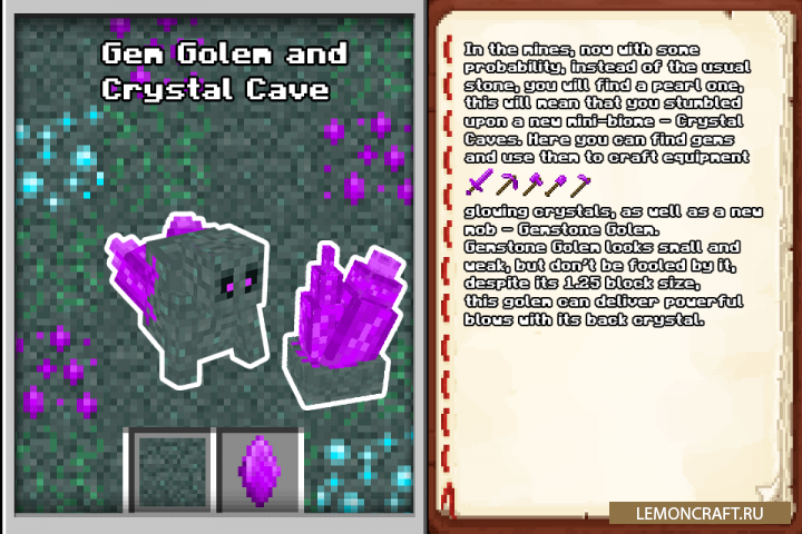 Мод на прикольных мобов Astemir's Forest Craft создан русскоязычным автором astemir_kerefo и добавляет в игру довольно качественно прорисованных мобов, несколько новых предметов и небольшой подземный биом "Пещера кристалов".